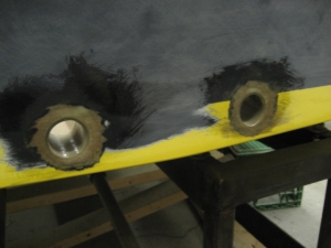 Fiberglass tubes were fabricated and epoxied into the holes.