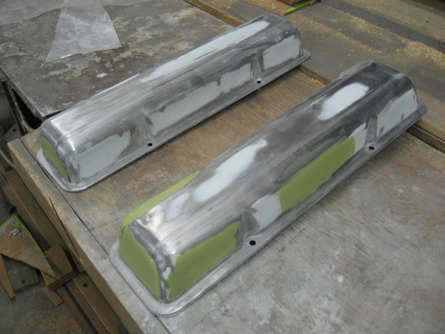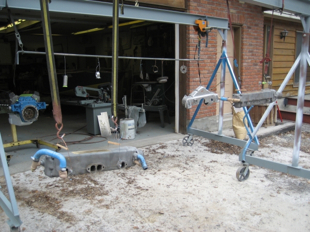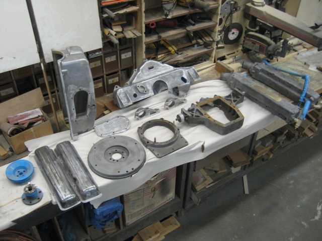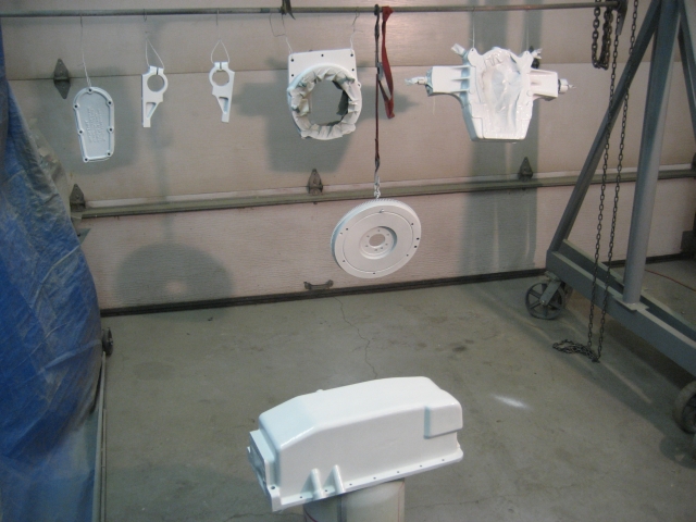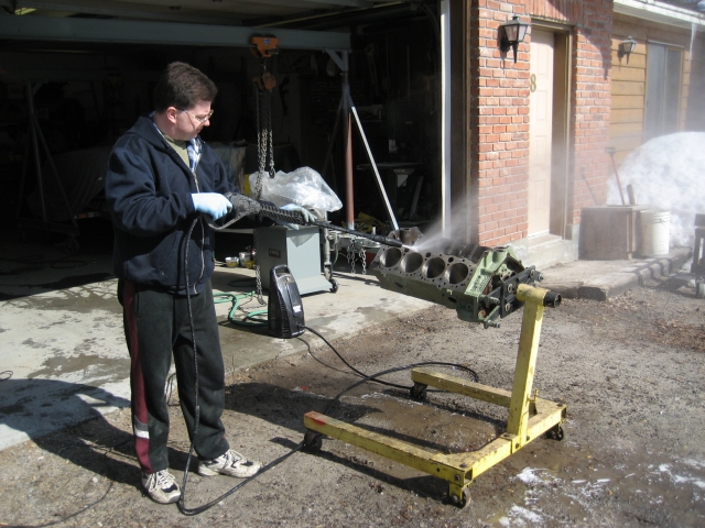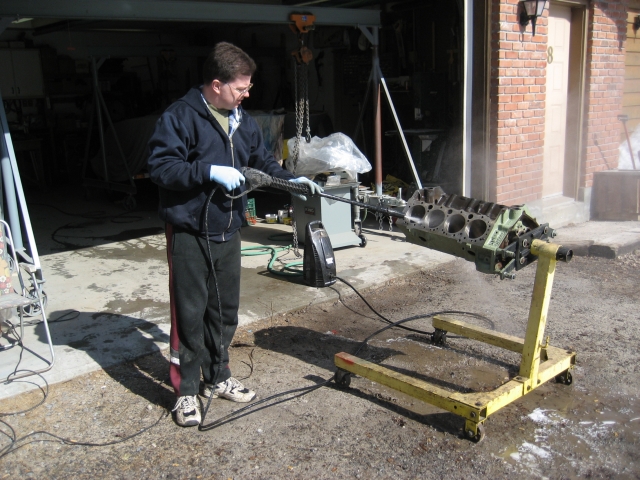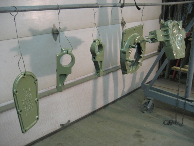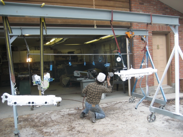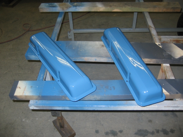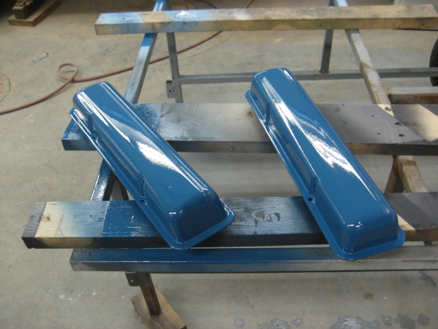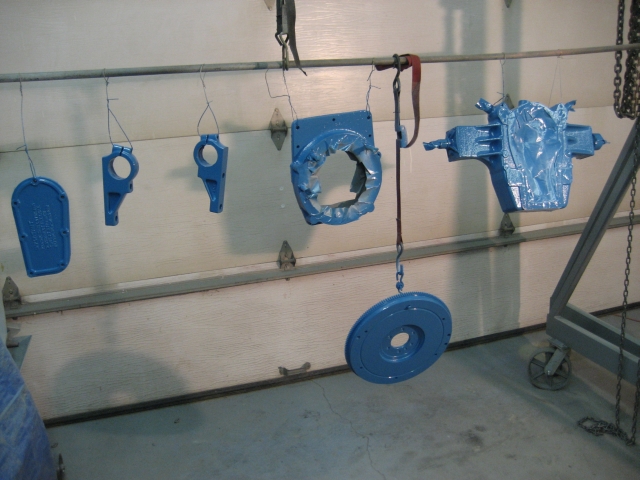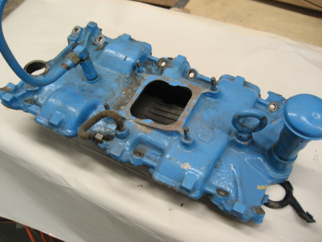 Exhaust manifolds and other painted parts were chemically stripped and sandblasted.