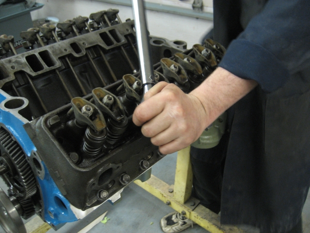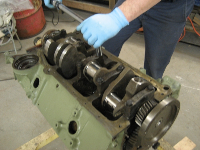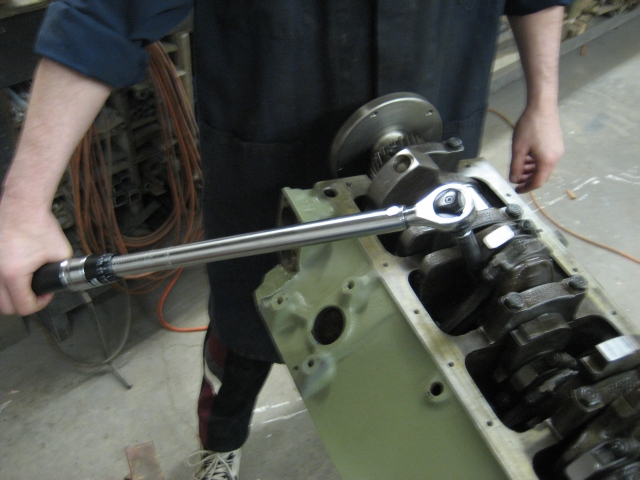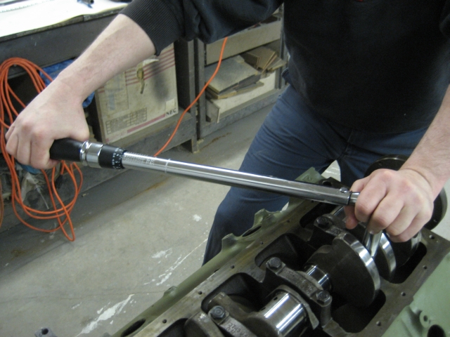 Torque the main bearing cap bolts to 65 ft/lbs.