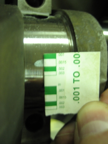 plastigauge kit's ruler. Crankshaft main bearing clearance : 001" - .004"