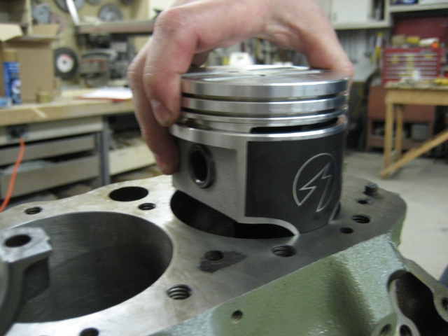 Install piston without rings to check bearing clearances. Stock cast pistons were upgraded to