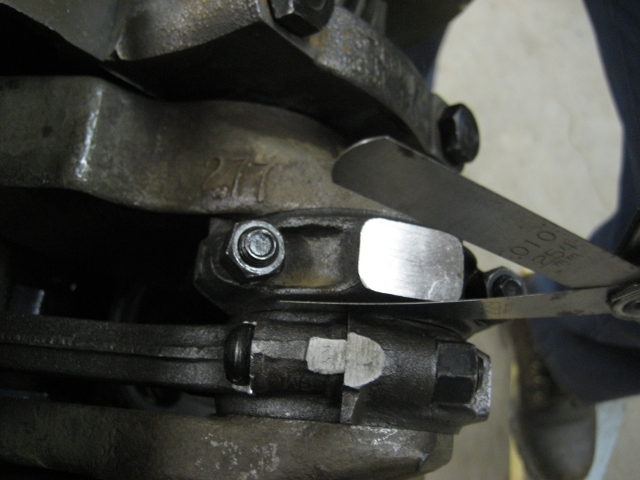 Torque the cap bolts and measure the connecting rod side clearance (two rods) : .008" - .014"