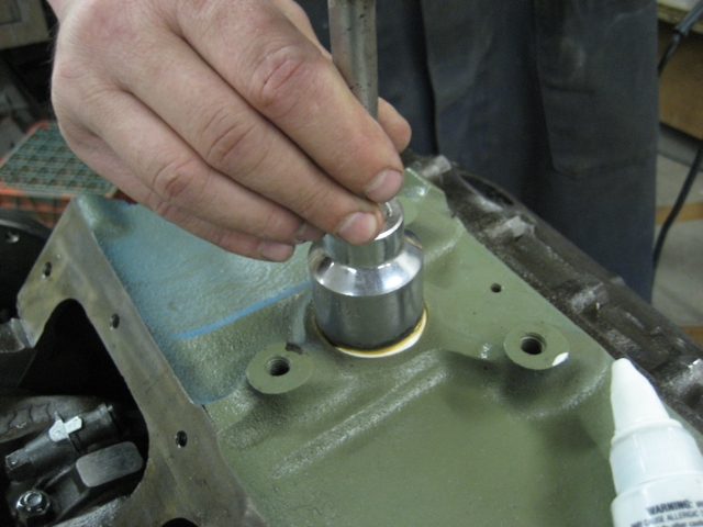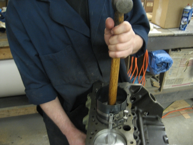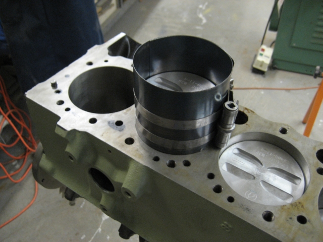 Installing the piston with a piston ring compressor. (03-APR-2009)
